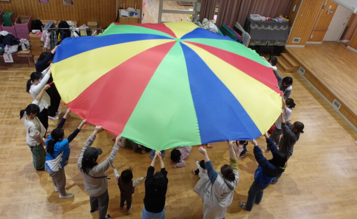 最後は空気を含んで大きく広がるバルーンの中に入って、子どもも大人もワクワクしながら、楽しみました。